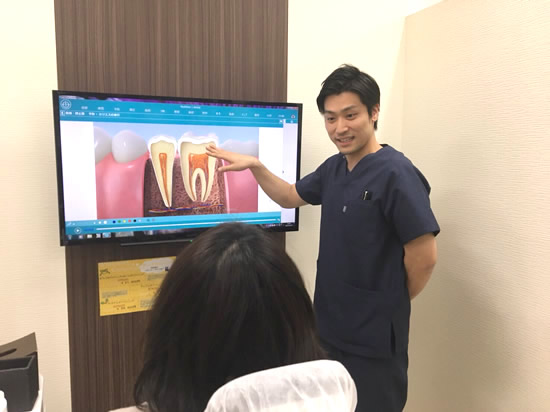 患者様とのコミュニケーションを図ることで、患者様の歯科医療 に対する不安な気持ちや痛みを理解し、各個人にあった治療方法を医師がわかりやすく説明し、御納得して頂いたうえで治療をうけることができます。
